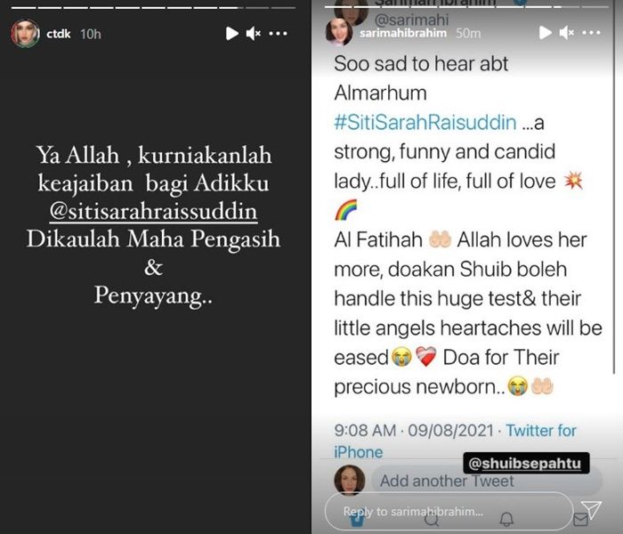 Menurut Nana keadaan isteri pelawak dan usahawan terkenal. Pelawak popular Shuib Sepahtu memaklumkan isterinya Siti Sarah Raisuddin berada dalam keadaan tidak baik ketika ini. Perkara itu dikongsi Shuib sebelum majlis bacaan Yassin dan doa selamat yang dihadiri hampir 1000 ahli keluarga rakan dan dan peminat untuk Siti Sarah secara virtual dimulakan malam ini.